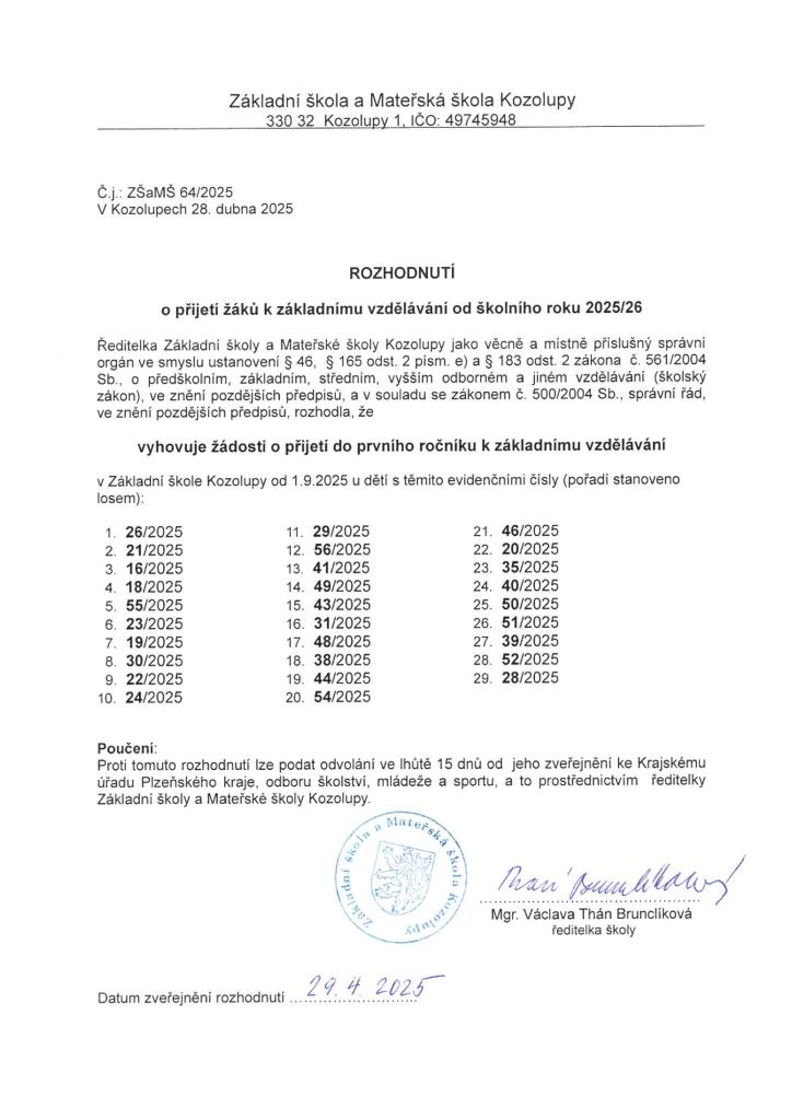 rozhodnutí zápis ZŠ Typ: PDF dokument, Velikost: 449.01 kB