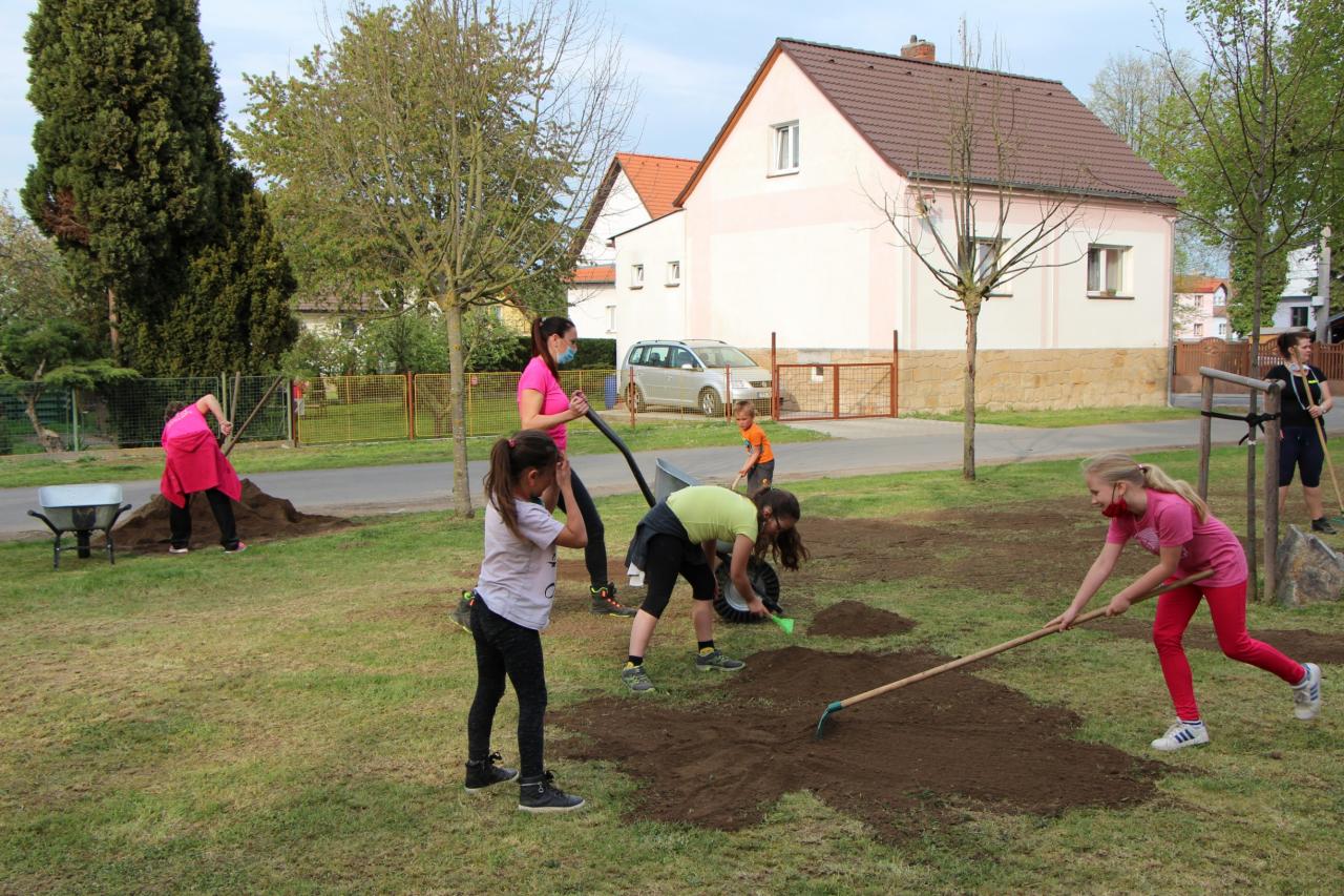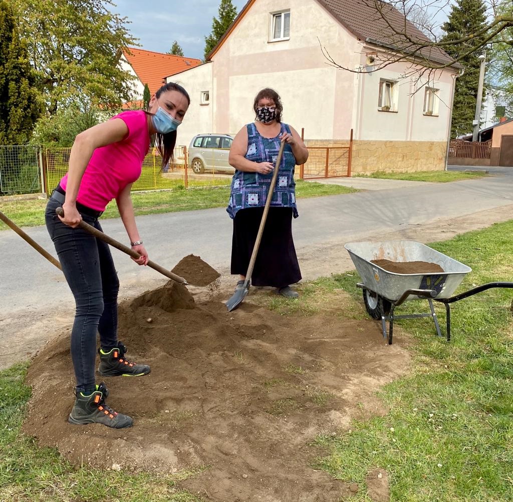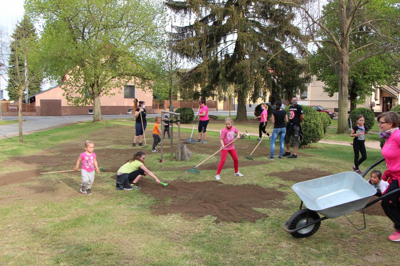Hasičky Kozolupy a zaměstnanci úřadu se v úterý 28. 4. sešli, aby v místním parku založili Kozolupskou louku.